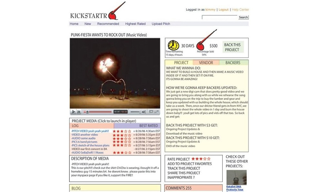 2007 年时,佩里的一位老朋友向他引荐了设计师查尔斯·阿德勒(Charles Adler),他们见面第二天就开始在 佩里公寓一块儿工作了,几个月时间,终于敲定了网站框架和细节。(这篇《生日快乐!Kickstarter 三岁了!》中有不少截图)